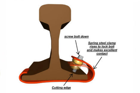 This type of rail bond is used as a temporary or stationary connection of cables to the rail.