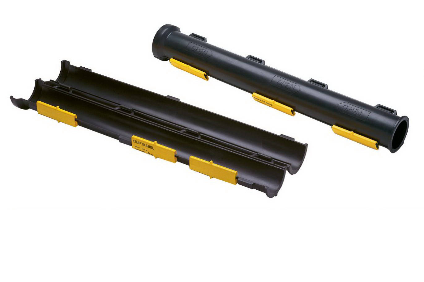 The extremely strong Divisible pipe, protectus consist of two halves that is easily locked safely with side-locks in different colors for different cable types. Protectus are made of recycled polyproylene and can be reused many times. After its life-time it is 100% recyclable. Available in lengths of 1 meter and in 4 diameter (60/110/160/127 mm).
